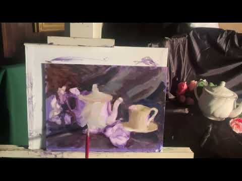Quiet Presence — Tea Pot with Rose and Cup Study — Framed (9 × 12) Original oil on panel