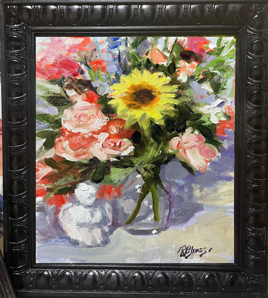 Studio Sunflower with Roses Study — Oil on Board, 9 x 12 inches By Richard Burke Jones - One Week Only
